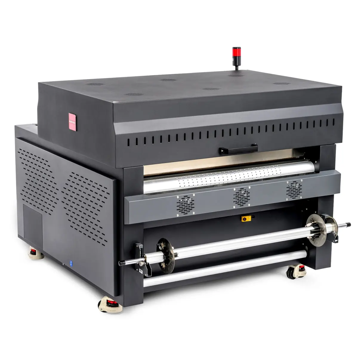 Mit einer maximalen Medienbreite von 90 cm deckt die Inline Compact 900 ein breites Anwendungsspektrum ab – von Textiltransfers für Merchandise und Arbeitsbekleidung bis hin zu größeren Transferformaten für industrielle Anwendungen. Die Anlage ist auf kontinuierliche Roll-to-Roll-Produktion ausgelegt und ermöglicht stabile Ergebnisse auch bei längeren Produktionsläufen.